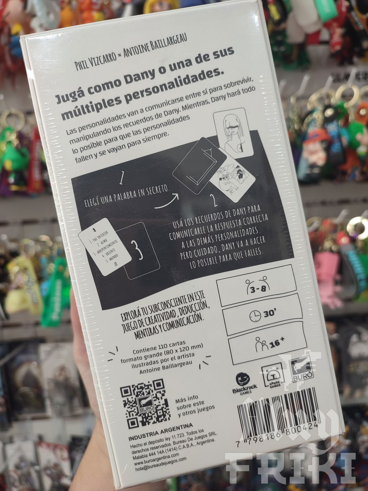 Utilizando algunas de las 60 cartas con arte surrealista, vas a dejar fluir la corriente de la asociación libre para que tus compañeros adivinen la pista correcta. Vas a desplegarlas sobre la mesa, ubicarlas de la manera que te convenga y todo lo que se te ocurra para lograr que adivinen una palabra entre 5 muuuy parecidas. Es como esos juegos de dibujar una pista, ¡pero sin dibujar! Te las tenés que ingeniar con las ilustraciones que tenés a mano. Pero cuidado: entre ustedes hay un traidor. Entre ustedes está el mismísimo Dany, que quiere sabotearlos para ser el único ganador.